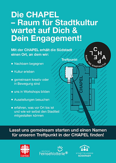 Der CHAPEL Raum für Stadtkultur e.V. ist Mieter der Chapel in der Südstadt und betreibt die CHAPEL als Bürgerzentrum.